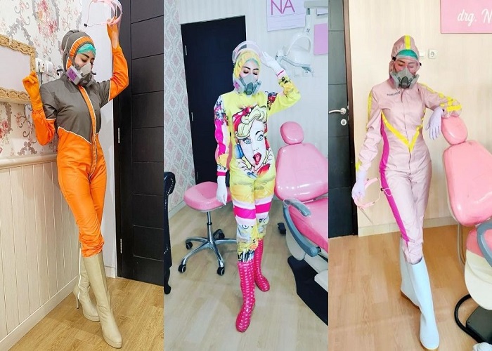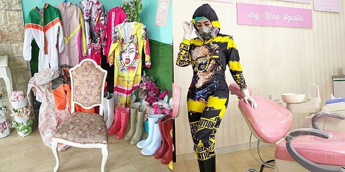 Pada umumnya, dokter mengenakan APD dari baju hazmat yang berwarna putih polos tetapi berbeda yag dikenakan oleh dokter gigi bernama Nina Agustina ini. Di mana drg Nina mengenakan APD berbentuk kostum dengan berbagai warna nyentrik serta bergambar setiap harinya. Drg Nina mempunyai APD dimulai dari yang berwarna pink, orange hingga kuning. Melalui akun instagramnya, drg Nina seringkali membagikan momen ketika sedang mengenakan APD unik tersebut.