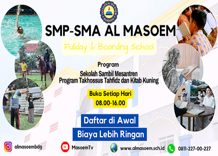 SMP terbaik di Bandung yang merupakan bagian dari Yayasan Al Masoem dapat menjadi referensi bagi Anda untuk menentukan kesuksesan anak ke depannya. Perlu diakui, dengan bergabung di pendidikan Islamic Boarding School, masa depan anak akan tertata. Tidak hanya ilmu untuk dunia saja yang mereka dapatkan. Namun akan ada ilmu akhirat yang selalu mereka terapkan dalam hidupnya. Sehingga kesuksesan dunia dan akhirat dapat mereka raih dalam satu lembaga pendidikan. Sebab peradaban dunia tergantung pada kualitas umatnya. Dan keselamatan akhirat sangat bergantung pada perilaku kita selama hidup di dunia.